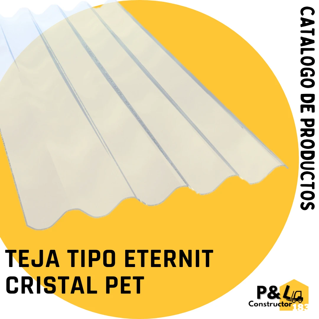 La Teja Tipo Eternit Cristal PET es una solución económica, liviana y ecológica para cubiertas, fabricada en material 100% reciclado y reforzada con aditivo UV que mejora su durabilidad ante la exposición solar.